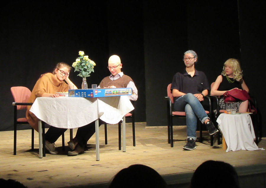Am 29. 6. 2017 fand im Barocktheater ein abwechslungsreicher Theaterabend der DSP-Gruppen statt. Die Schüler der 2. Klassen gaben mit kreativer Unterstützung der Zuseher mehrere Disziplinen des Improvisationstheaters zum Besten. Danach präsentierten die dritten und vierten Klassen jeweils ein Stück, das sie in diesem Schuljahr mit Prof. Jocher erarbeitet hatten.