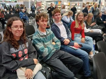 Außerdem konnten die Schülerinnen und Schüler die Präsentation der beiden Gewinner des heurigen Buchpreises miterleben. Frieda Paris wurde für ihr lyrisches Werk „Nachwasser“ mit dem Debutpreis ausgezeichnet. Der Österreichische Buchpreis 2024 ging an den – gleich um die Ecke, nämlich in Eberstalzell, wohnenden Autor Reinhard Kaiser-Mühlecker für seinen Roman „Brennende Felder“. Die beiden Ausgezeichneten gaben in einem Literaturgespräch Auskunft über ihren Zugang zur Sprache und zum Schreiben.