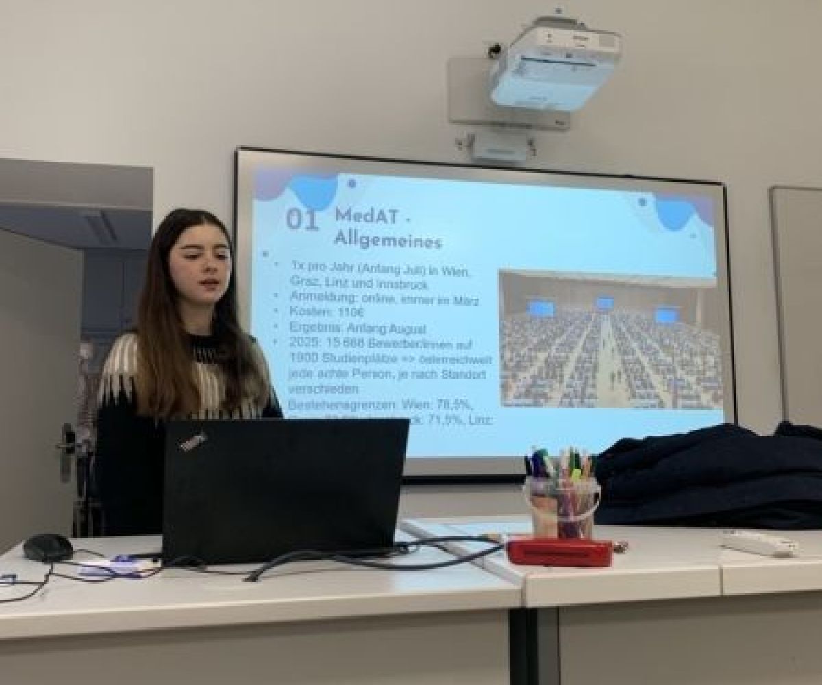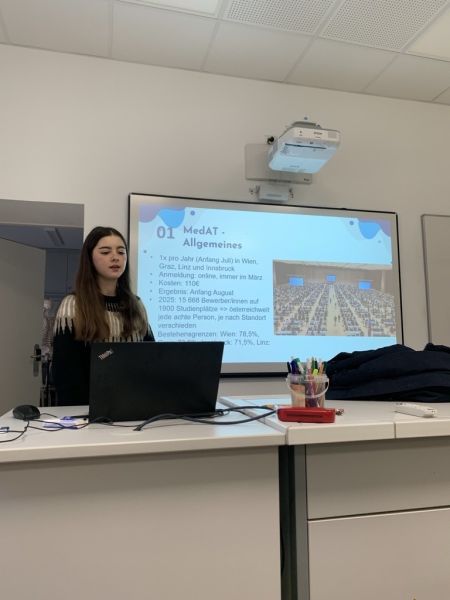 Miriam Söllinger, Absolventin des Maturajahrgangs 2024/25, berichtete im WPG Biologie von ihren Erfahrungen beim MedAT und ihrem Humanmedizinstudium an der JKU Linz.